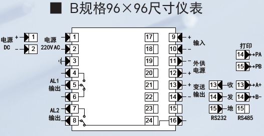 ② 96×96和96×48的仪表,同时具备变送和通讯功能时,只能1点报警;