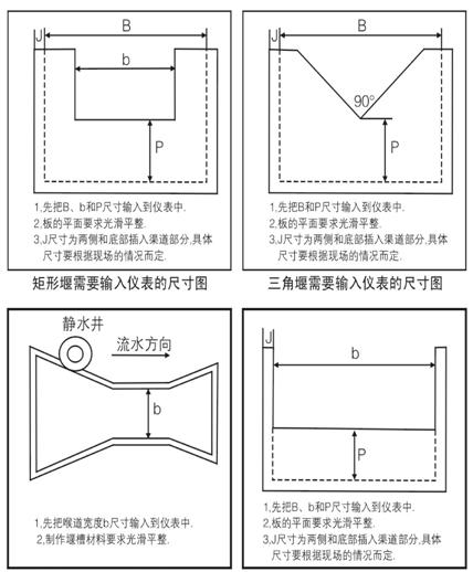 - 本仪表适用:帕歇槽、矩形堰、等宽堰、三角堰。