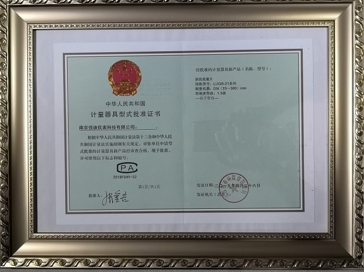 迪泰尔涡街流量计已申请计量器具型式批准,编号:CPA:2018F049-32.